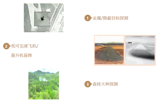本目標輻射特性測試系統(tǒng)包含地基、空基及無人機等多種載平臺,可實現(xiàn)Ka 、W等多頻段、V/H雙極化輻射特性的高精度探測及快速成像,可用于隱身目標探測、目標輻射特性評估、森林防火、低可見度環(huán)境下的飛機起降導航等應用領域。