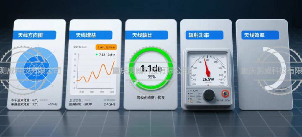 具備天線方向圖、天線增益、天線軸比、輻射功率、天線效率等。