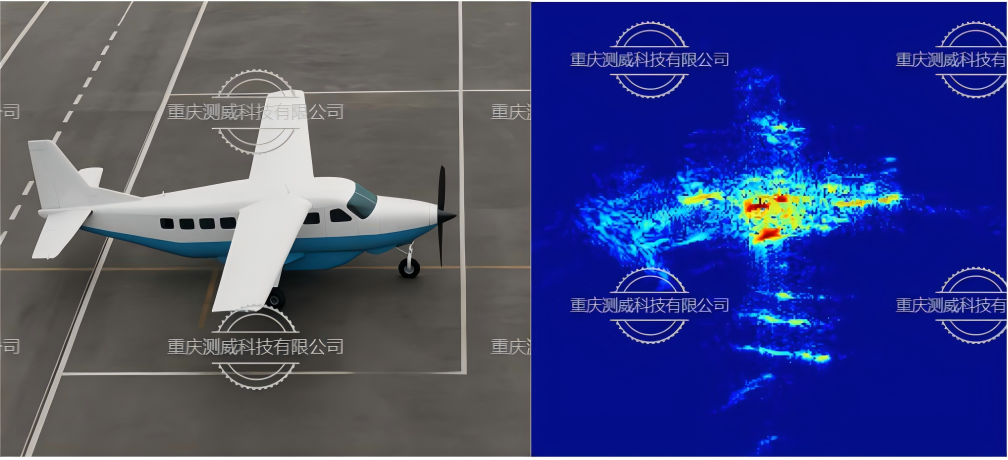 該系統在Ku波段、1GHz帶寬的配置下,對空曠場地中的飛機目標進行了成像實驗。最終成像分辨率達到0.15米×0.15米,驗證了所提算法在真實場景中的有效性與優越性。